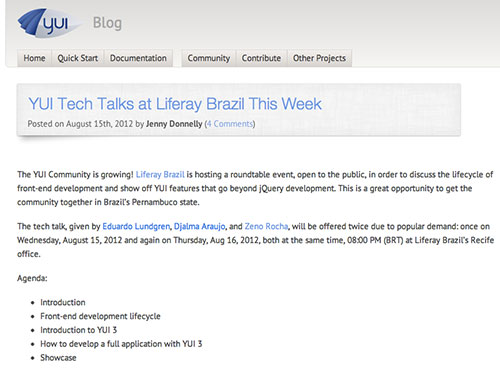 Mas como estou estudando YUI ultimamente, resolvi puxar algo para reunir os desenvolvedores e discutir esse assunto de forma mais aprofundada.