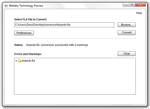 Pra começar, outro ponto que difere a ferramenta da Google para essa é justamente o tipo de entrada da conversão. Enquanto, o Swiffy usa arquivos .swf, o Wallaby utiliza arquivos .fla.