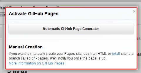 So when this pop-up appeared, he just clicked on the ‘Automatic GitHub Page Generator’. Even because this generated page is already awesome and he doesn’t need to spend time coding it.