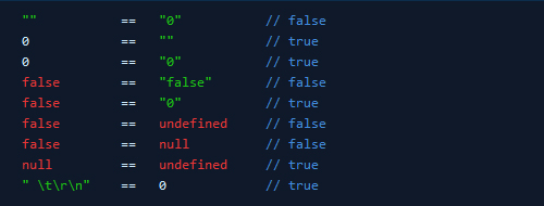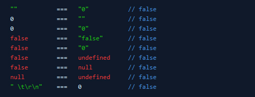 - Tipos nulos e indefinidos são iguais, porém não estritamente.